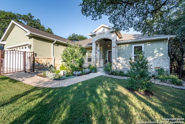 Home shows pride of ownership! Immaculate one story home that's just a few minutes from Canyon Lake, wood and tile floors throughout, recent upgrades include water softener and R O system, gutters, screened in back porch, plantation shutters, retaining wall at front of lot, tons of landscaping, wrought iron fence around front yard which makes for a beautiful, private courtyard, golf course view of hole #5 in backyard along with fire pit, fresh exterior paint, home is close to boat ramp #5 and Comal Park