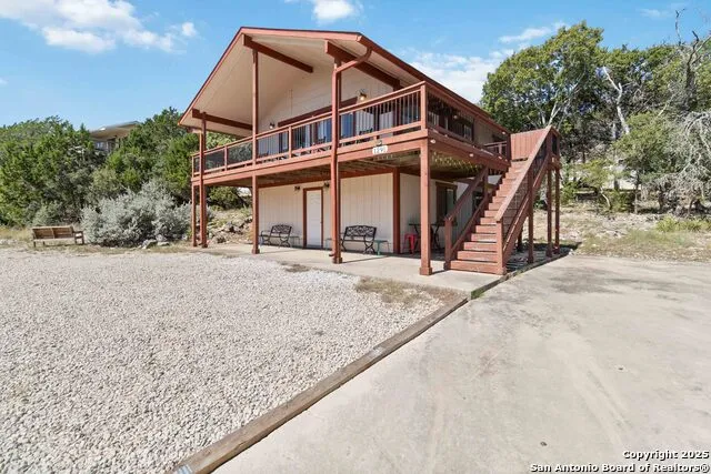 Discover a peaceful hill-country retreat with wraparound lake-view living. Perched above the trees, this updated 2-3 bedroom home offers a rare blend of privacy, flexibility, and character. Natural light fills the open living area, while the surrounding deck becomes an extension of your daily life-morning coffee, evening sunsets, and quiet work-from-home moments all feel elevated here. A versatile downstairs bonus space provides endless possibilities: studio, office, guest suite, or a private third-sleeping area. The additional lot conveys, expanding future potential for outdoor living, gardening, parking, or future improvements. Recent updates include refreshed fixtures, flooring, paint, mini-split, and lower level bathroom remodel-creating a move-in-ready feel that's hard to find at this price point. Already fully furnished, the home offers optional turnkey convenience if you ever want to host family, friends, or occasional short-term guests. This one is for the buyer craving treehouse vibes, views, and a quiet home base close to the lake. Community amenities include a club house and community pool. Property qualifies for Zero Down USDA financing-don't miss this opportunity to own a versatile Canyon Lake property.