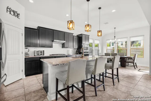 PRICE IMPROVEMENT! New Inclusions + up to $5,000 in buyer concessions toward closing costs or rate buy-down. Washer, dryer, refrigerator, outdoor patio furniture, and fire pit will convey, making this home truly move-in ready. Seller is motivated! Great opportunity for buyers looking to reduce upfront costs and enjoy immediate value! Welcome to The Preserve at Singing Hills, where comfort, style, and thoughtful upgrades come together in this beautifully maintained 4-bedroom, 3-bathroom, 2,343 sq ft home. Designed for both everyday ease and elevated living, this single-story layout blends modern finishes with timeless Hill Country charm. Step inside to an inviting open floor plan with tile flooring throughout showcasing wood plank tiles in the bedrooms, upgraded lighting, recessed lighting, and premium window treatments, including plantation shutters and remote-controlled electric blinds in the living room. Modern ceiling fans and updated fixtures add a polished, cohesive feel throughout the home. The spacious living area is perfect for gathering, featuring built-in surround sound speakers both inside and on the back patio-ideal for movie nights or relaxing mornings. The kitchen stands out with modern pendant lighting, upgraded fixtures, and a functional layout designed for cooking and entertaining. A robust suite of smart and security features elevates the home even further, including a full Swann security camera system, smart exterior security lighting, motion-sensor lights, a smart thermostat hub. Outside, upgraded landscaping with stone edging enhances curb appeal, while the covered patio-complete with built-in speakers-creates a peaceful outdoor retreat for unwinding or hosting friends. Located in the desirable Preserve at Singing Hills, this home sits amid Hill Country beauty and neighborhood charm. Enjoy nearby attractions such as Guadalupe River State Park, Canyon Lake, scenic trails, and abundant outdoor recreation. Everyday conveniences, shopping, and dining are just minutes away at Singing Hills Shopping Center, with quick access to Hwy 281 for easy commuting. Blending modern upgrades, smart home features, and thoughtful design, this home offers exceptional living in one of Spring Branch's most inviting communities.